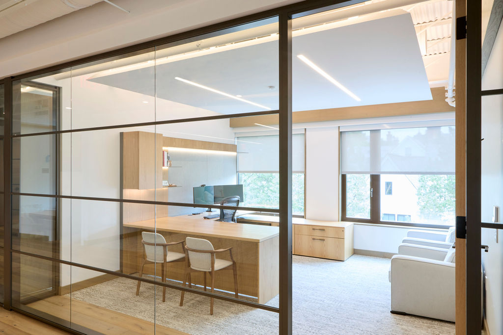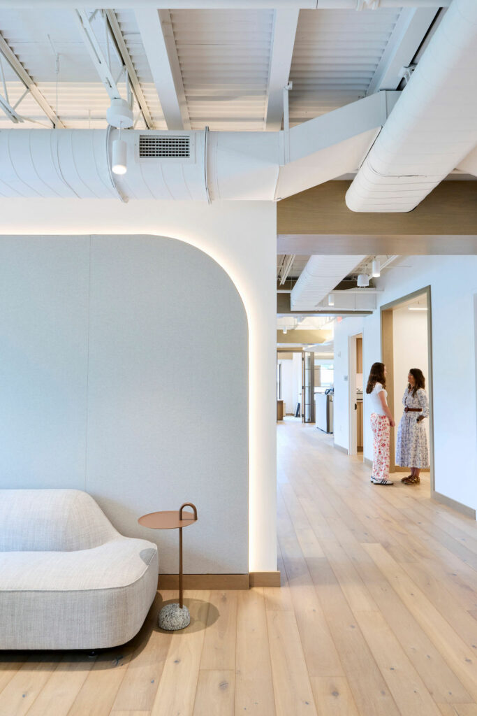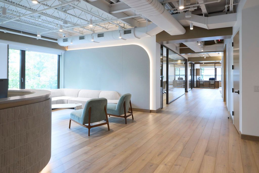 We designed this sophisticated workspace for a leading Private Equity firm’s new Greenwich headquarters, blending warmth and refinement with the building’s raw industrial character. The client envisioned an environment that felt natural and inviting, yet remained true to the open, structural integrity of the space.